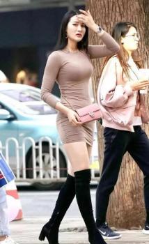 卡其色修身连衣裙虽然没有添加任何颜色的点缀,搭配起来轻松方便,粉红色的小挎包增加了时尚元素,还有减龄的作用,黑色的高筒深靴,提升身材的高度,拉伸腿部的长度,将时尚大妈妖娆迷人的曲线完美的勾勒出来,成熟饱满的女人味十分吸睛。