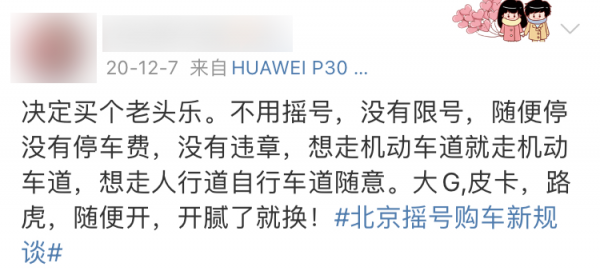 买“老头乐”,很多情况下是买车难的无奈之举。/微博网友