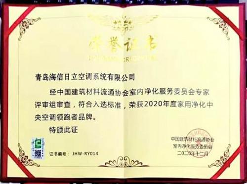 在2020年底,在 “2020年中国第二届室内净化高峰论坛暨好水好空气消费节(领跑者赋能计划)”上,日立中央空调由于其在消费者中的知名度和美誉度,被授予《2020年度好水好空气消费节消费者喜爱品牌》以及《2020年度家用净化中央空调领跑者品牌》两项大奖。
