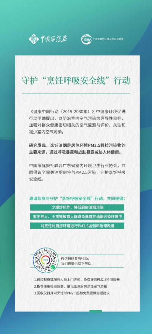 除此之外,为了进一步加强国民对厨房PM2.5的关注意识,中国家庭报还推出了守护“烹饪呼吸安全线”行动,用户参加活动可免费领取PM2.5专业检测仪,通过专业仪器来直观地感受自家厨房空气质量的好坏。即便出现PM2.5超标的情况,也能够及时作出应对措施,避免全家人长期生活在PM2.5污染的环境下。