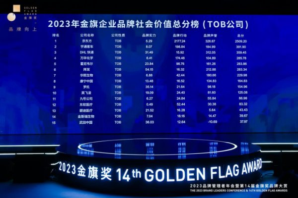 2023年金旗企业品牌社会价值榜单(TOB公司)