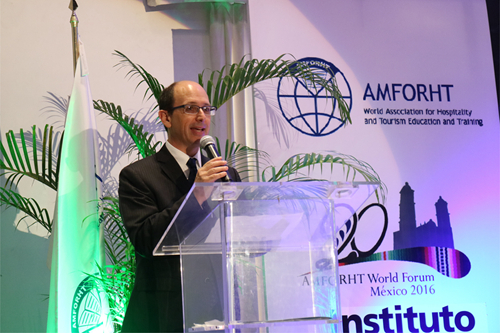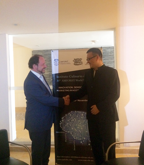 墨西哥2016年11月16日第20届世界旅游酒店业教育培训协会(AMFORHT·UNWTO)发展论坛在墨西哥普埃布拉市盛大召开,本次论坛以“旅游服务产业的创新、感知与市场”为主题,来自全球35个国家的旅游服务业政府、院校、企业及社会代表出席。