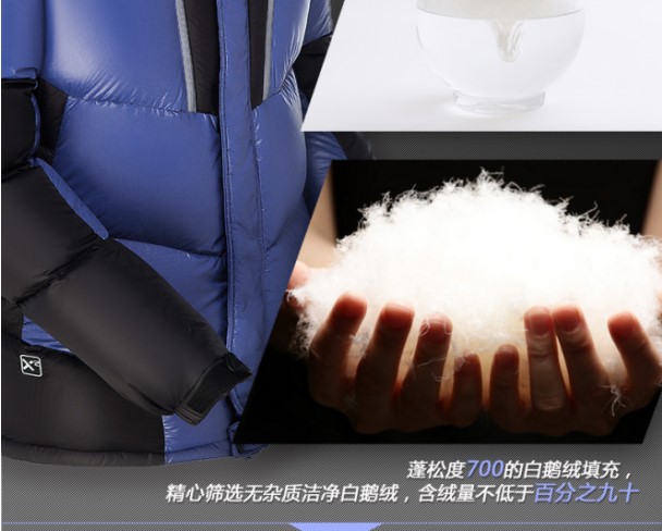 羽绒服特点:高蓬防水白鹅绒 加厚防磨面料