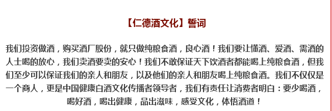 ??? 今年9月仁德公司又推出了營養豐富排毒瘦身“仁德.螺旋藻”和進軍酒業重磅推出“仁德茅台系列酒”,分别是仁德天下、仁德人酒、仁德家酒、仁德喜酒。同時仁德酒文化通過微信平台告訴天下人識别真假糧食酒的方法以及喝醬香酒的好處。