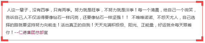 ??? 仁德事業的快速發展得益于深入民心的創新模式,得益于房地産行業的巨大魅力,得益于天人合一的創業環境、更得益于仁德人的信任與支持!