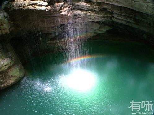 位于新坊乡龙溪村,沿清澈的小溪而上,有上、下两潭,称为白龙潭和黑龙潭。小溪两岸,群山耸翠,傍水逶迤,袅袅雾气,宛然龙的灵气。溯流而上两里左右,便可闻瀑布下坠声,震天巨响,瀑布高126米,涨水时宽达36米,水从陡峻处飞泻而下,遥望若银河倒泻。瀑布的右边镶嵌着一幅天然的浮雕人像,两位长者拱手作揖,步履趋前。顶部有一股暗色的锈水渗下,远看似蒙文,村民称为“雷公镌字”,传说雷神不时在上面留言,预示吉凶祸福。