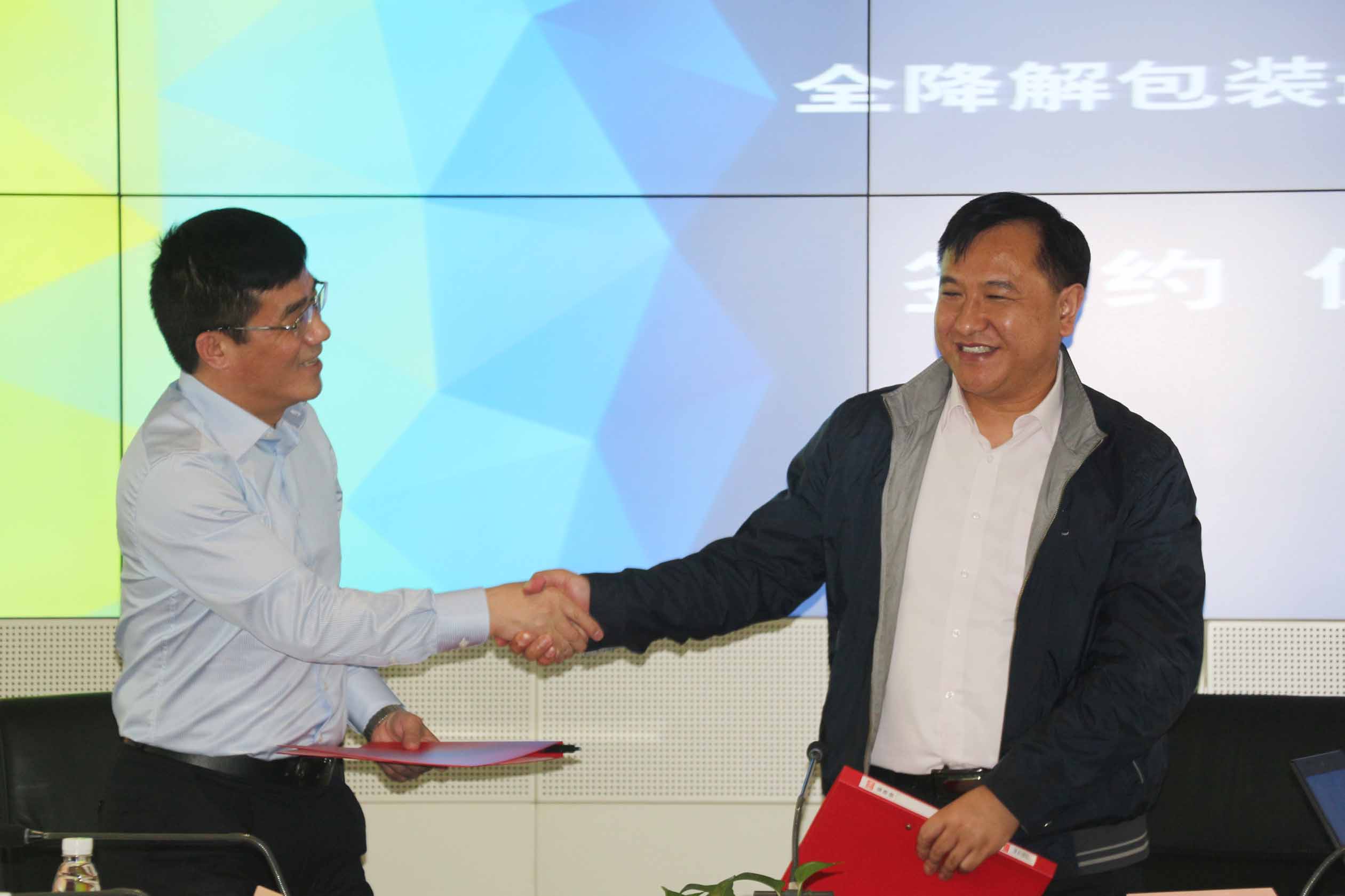 ? 10月18日下午,“全降解包装材料产业应用与可持续发展专家研讨会”在京召开。来自中国轻工信息中心、中国扶贫产业联盟、中国扶贫开发有限公司、北京投融资商会、山东淄博沂源县招商局、宁波镇海区经济合作局、京东集团、宁波吉丰环保科技发展有限公司以及轻工业协会下属包装协会、皮革协会等相关机构和企业的负责人、行业专家共计60余人出席此次会议。会上,浙江宁波吉丰环保科技发展有限公司总经理黄吉人为与会来宾做全降解包装最新成果的项目发布,同时与中国扶贫开发服务有限公司进行产业扶贫示范工程签约仪式。