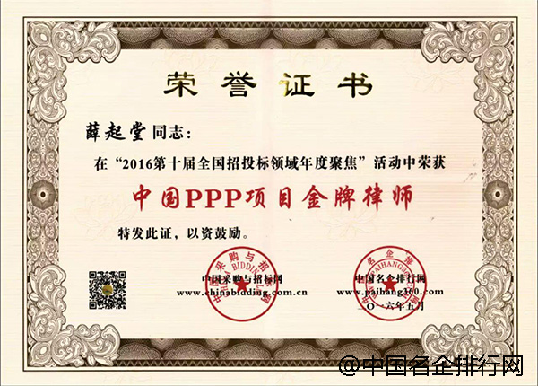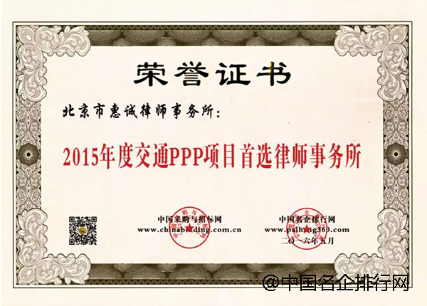 惠诚律师所全国PPP法律事务中心,是由惠诚北京总所牵头,全国16家分所专业研究PPP法律的资深律师组成。法律事务中心主任由PPP法律领域权威专家薛起堂律师担任,中心成员由均为硕士研究生以上学历的资深律师组成。在国家发改委主管的中国采购与招标网的评选中,北京市惠诚律师事务所荣获“2015年度中国PPP项目十佳律师事务所”和“2015年度交通PPP项目首选律师事务所”,团队的薛起堂律师还荣获“中国PPP项目金牌律师”称号。