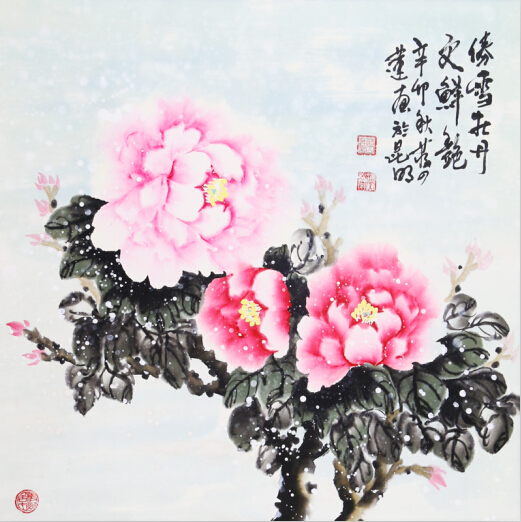四莲女士自幼喜爱绘画,苦学古今诸家牡丹,工笔重彩,所画牡丹意境清新,富贵吉祥,作品被国内外书画爱好者收藏。蒋四莲擅长画牡丹花,被美誉为“牡丹仙子”,其笔下牡丹花意境清新,富贵吉祥。她感悟于心,意走笔端,枝苍老,叶茂密,调色入花,用水微妙,润泽生动。
