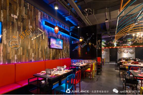 此次成都众派思装饰工程有限公司(JUBILANCE)设计打造的“木玛微锅荟”火锅店,客群定位以“闷骚的80后,明骚的90后”为主体,采用当下备受年轻消费主力欢迎和喜爱的工业娱乐风进行设计,以工业风为主体,融入酒吧元素,使空间变得热情活泼娱乐感十足。