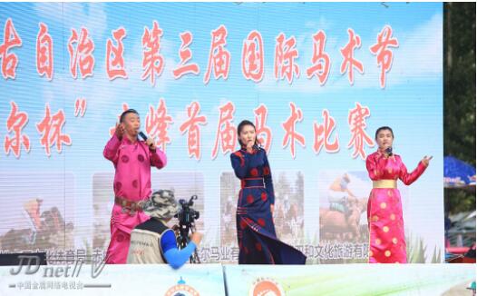 9月21日上午9:00,伴随着具有浓郁蒙古族风情的歌舞“2016第三届国际马术节暨‘金戈尔杯’赤峰首届马术比赛”正式拉开了帷幕。中央电视台著名节目主持人蔡猛现场解说。