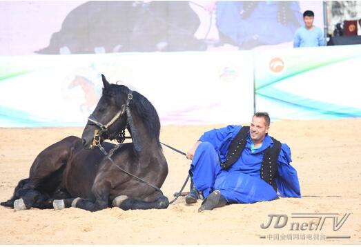 开幕式中,来自匈牙利的驯马师巴布现场展示了的高超的驯马技术。高大的马匹,在他的指挥下十分听话。时而躺时而做,都完全在他的控制之中,引起现场观众的连连叫好。随后汗血马和阿拉伯马、弗里斯兰马依次出场展示,鹤颈鹰眼的汗血宝马一出场就吸引了观众的注意力,出色的表现赢得了满堂彩。