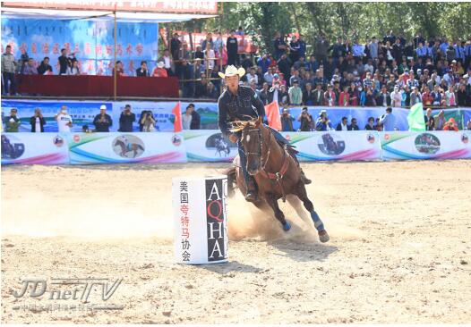 表演展示结束之后,夸特马绕桶赛开始。夸特马的爆发力极强,在绕桶比赛中有着明显的优势。在专业组的比赛中,来自天拓马业的巴图表现卓越,以17秒334的成绩获得了冠军。在业余组的比赛中,来自京西马会的薛威威同专业组的选手不相上下,跑出了17秒741的好成绩,并凭借这一成绩,获得了冠军。