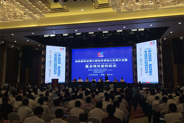 新疆自治区加快建设丝绸之路经济带核心区推介会暨重点项目签约仪式现场