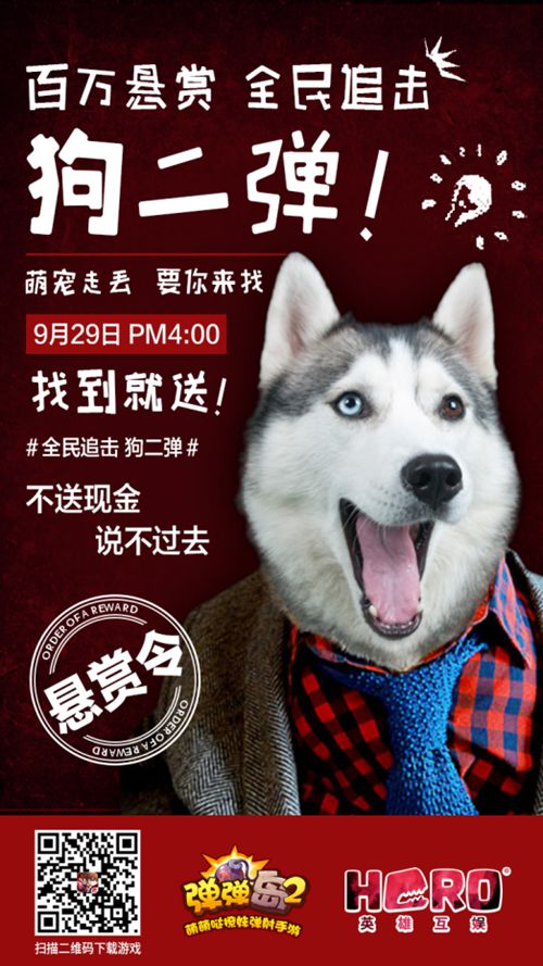 绝版宠物狗小弹 参与现场活动 赢取万元现金大奖 凡是到现场参与活动的玩家,均有机会获得万元现金大奖!你没有听错,只要在活动时间内找到狗二弹,并按要求完成任务的玩家,都可以获得官方提供的现金大奖,第一名完成的玩家即可现场获得一万元现金大礼,后续完成的玩家也有机会获得千元现金大奖!除此之外,所有参与活动的玩家均可获得由官方提供的价值588元游戏大礼包一个。