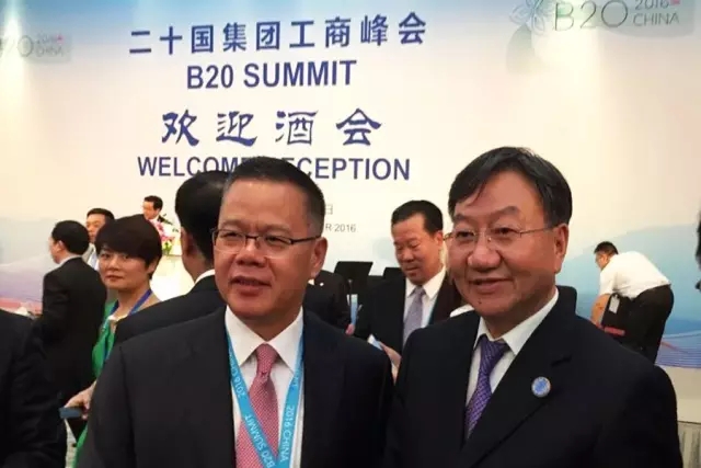 ▲2016年B20主席、中国贸促会会长姜增伟(右)与郑松兴董事长(左)合影留念