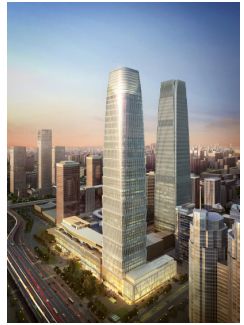 电脑模拟图片:国贸B座 (中) 乃中国国际贸易中心的一部分,也是日后开幕的新国贸饭店的所在