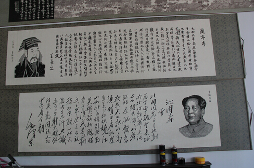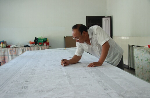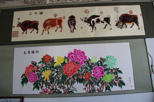 ?第一位出来迎接的就是这家的主人,民间剪纸艺术大师周河先生,他笑容可掬,待人谦和,身材魁梧,展示出一种艺术家的气息风尚。周河先生是蔚县剪纸艺术传承人之一,出生在剪纸世家,受父辈影响,从小就爱好剪纸,高中毕业后便全身心的投入了剪纸艺术,经过几十年的刻苦钻研和努力,使剪纸艺术这个非文化遗产归宝得到了更好的传承和弘扬。因此周河先生也获得了成功及更多荣誊,他的作品得到更多人的认可喜欢及欣赏。近年来作品已受到国内外剪纸爱好者的青睐和收藏,同时也得到国家相关部门的公认重视。有的作品《巨龙图》已悬挂在人民大会堂并收藏,《九州山川实证揔图》上海世界博览会收藏,《嫦娥奔月》被北京天文台收藏,《中华和谐图》也被首届华人运动会作为精品展出。1999年《巨龙图》荣获“昆明世博会”剪纸大师称号并获金奖,国家专利局颁发了剪纸外观设计专利证书。2002年9月获“华夏风韵剪纸艺术展”金奖。