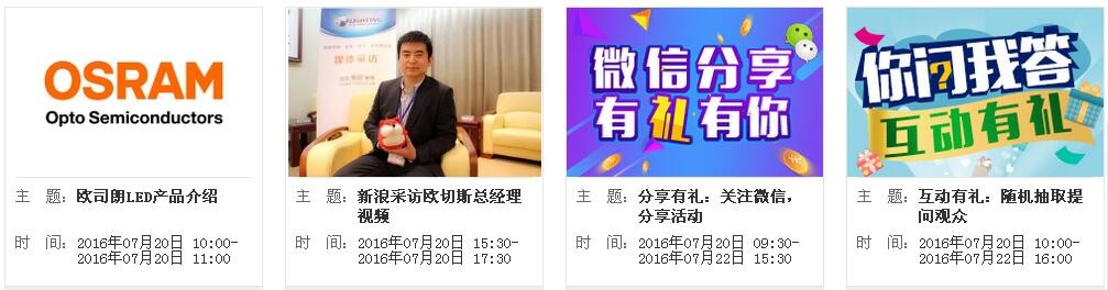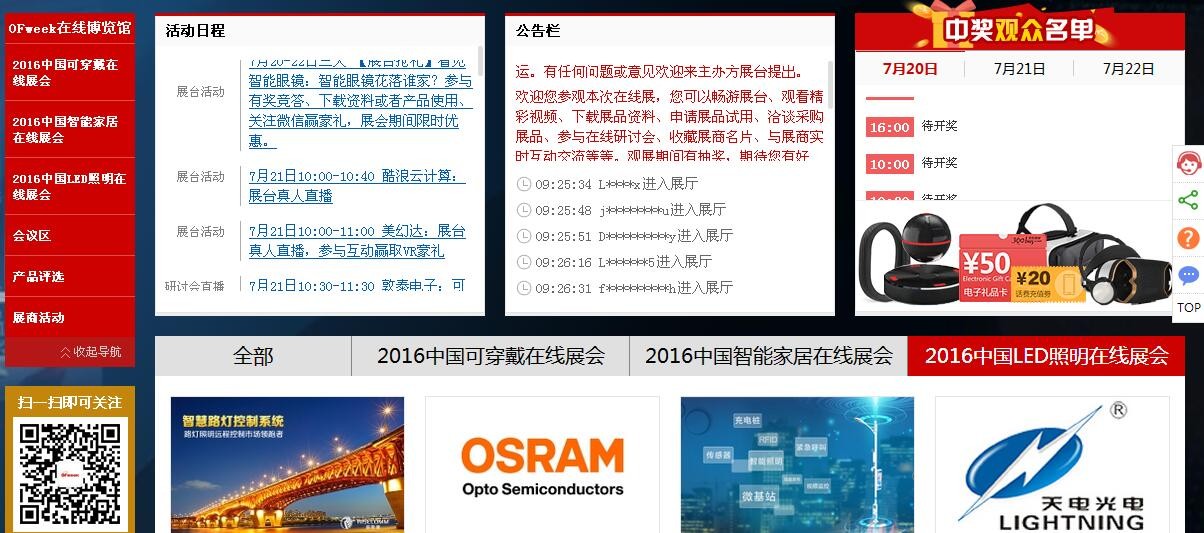 2016年7月20日,由OFweek中国高科技行业门户主办、OFweek半导体照明网承办的“2016中国LED照明在线展会”盛大召开!本届在线展会涵括LED照明行业上中下游全产业链,展会连续举办三天。通过互联网在线展会的创新性,为大家提供一个实时高效的优质品牌展示及交流的平台,让大家足不出户便能了解LED产业发展趋势,更好的开拓新的市场商机。