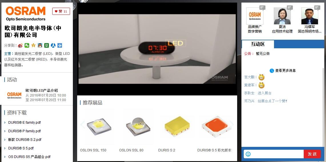 据展会现场了解,本届在线展会成功吸引了LED行业国内外知名企业参展,并通过真人直播、宣传视频、技术白皮书、样品试用、企业名片互换、客服实时互动等形式,展示最新产品与技术。现场观众也可以在独立展台与参展企业一对一交流,针对具体的产品或技术进行深入探讨,大大提升沟通效率。同时也可以针对感兴趣产品申请样品,最快地找到最适合的产品!