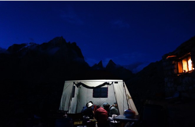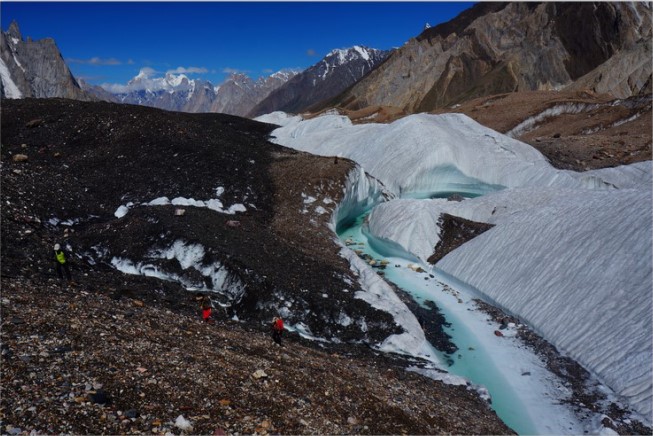 ? ? 第二天,营地到3300米的paiju营地,还是沿着Braldu河谷前行,距离22公里,今天队员们开始感到疲惫,但真正的考验明天才开始 。