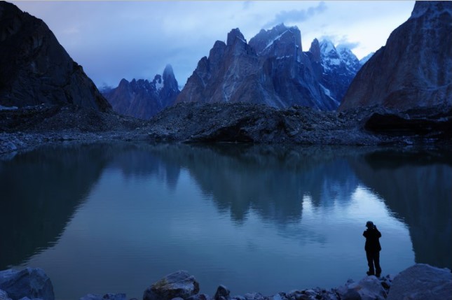 ? ? 第四天是相对轻松的一天,只徒步了4个小时,就到达了4000米的Urdukas营地,这里可以看到Uli biaho,Great Tran,Tran Tower等著名大岩壁山峰,是高海拔大岩壁攀登的世界闻名胜地。在这里休整了半天,大家拍照洗衣服,而速干长袖的速干功能也很实用,到营地后简单洗一下,几个小时就基本干透,第二天可以继续穿着。