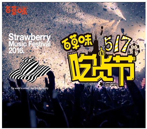 2016年的百草味517吃货节继续娱乐路线,在国内最有潮最具影响力的草莓音乐节上把音乐与娱乐到底,诠释“坚果与音乐都让人欲罢不能”的理念。在草莓音乐节现场,百草味通过各种坚果主题的活动,和消费者之间进行一次完美的互动。