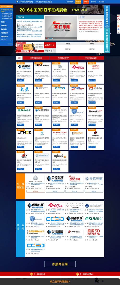 5月25日上午9点,由OFweek中国高科技行业门户主办、OFweek 3D打印网承办的新一届“中国3D打印在线展会”盛大开幕。 本届在线展会将持续两天,云集了全球众多知名3D打印企业,现场观众互动频繁,场面十分热烈。下面就让我们走进2016中国3D打印在线展会,一起见证首日盛况。