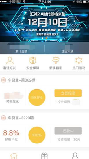 ?12月10日,国内专业的互联网车金融平台,汇诚金服APP即将正式上线。此次APP的全新上线,不仅在产品界面上做了视觉优化,同时针对用户的投资习惯、使用等多方面进行了技术性的突破!