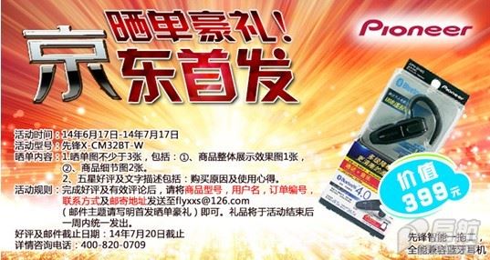 先锋多功能音箱XCM32BTW心意呈现!抢购大潮即将来临!京东6月17号到19号,限时三天抢购,原价1280元,限量赏新价980元!(限量供应)活动期间成功付款购买并晒单还可获得价值399元蓝牙耳机一副!如此高品质、高性价比的多功能蓝牙组合音响,你准备好拥有了吗!