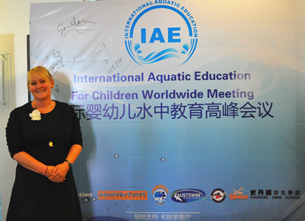 ??? 来自美国加拿大的Sharron?女士是加拿大本土水中教育行业领袖,在加拿大拥有30多年的教学历史与经验,同时她此次还身兼美国游泳学校协会代表。在IAE的大会上,她带来了美国游泳学校协会的主席亲笔信,并展示了整个北美的水中教育文化,为本次大会奉献了很多宝贵智慧。
