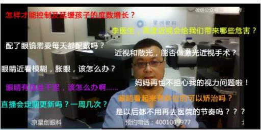 首播的视光界网红星创眼科李雪非院长背景大有来头,是早期中国同仁医院的屈光手术权威专家之一,在30分钟的轻松愉快直播过程,非常详细的解答每一位用户的提问,包括:儿童近视、成人视疲劳、蓝光危害、老人黄斑病变等眼睛健康问题的预防和治疗,为直播界带来一股“知识健康之风”。
