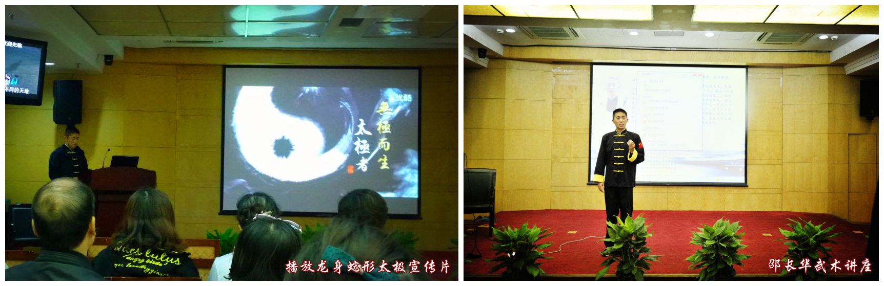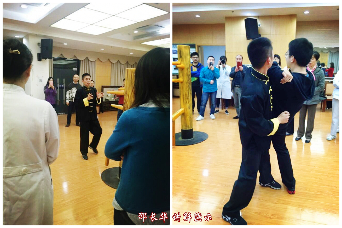 ? ? ? ??2015年11年18日晚上6点,上海市第十人民医院职工活动中心仍然灯火通明。这里正如火如荼的进行着一场别开生面、精彩纷呈的龙身蛇形太极拳的教学讲座。主讲者是上海加华国术馆的馆长邵长华师傅。