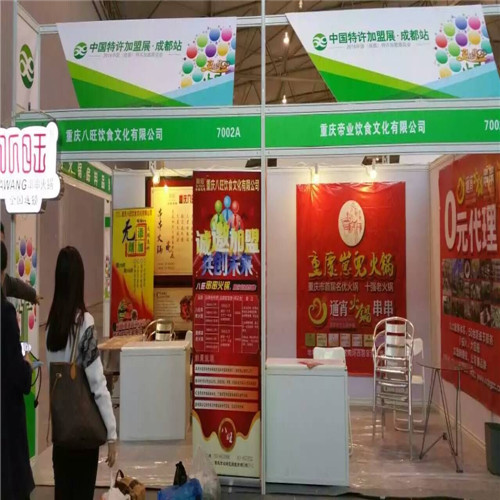 参加成都加盟展的人对无添加剂的火锅底料非常有兴趣