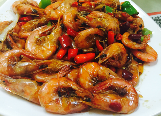 香辣基围虾,以前一直吃的是白灼的,第一次尝试这种口味的基围虾,嗯,虾肉很鲜,并且看上去就特别诱人!
