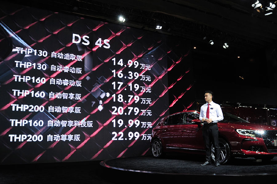 于4月底的北京车展上市的精致动感两厢车DS?4S,作为DS的最新力作,在重庆车展华丽现身。DS?4S外观采用极具辨识度的“DS之翼”家族式前脸,多处细节融合前卫美观的DS?Pattern组合式菱形设计,诠释了来自巴黎的前卫风尚。车身尺寸方面,DS?4S长宽高和轴距分别达到4435mm×1843mm×1510mm和2715mm,乘坐空间宽适,后备箱达到395L,相比同级优势明显。另外,为满足消费者的差异化需求,DS?4S提供THP130、THP160和THP200三款T动力选择,并且全部匹配第三代爱立信六速手自一体变速箱,兼顾澎湃动力与燃油经济性的最佳平衡。