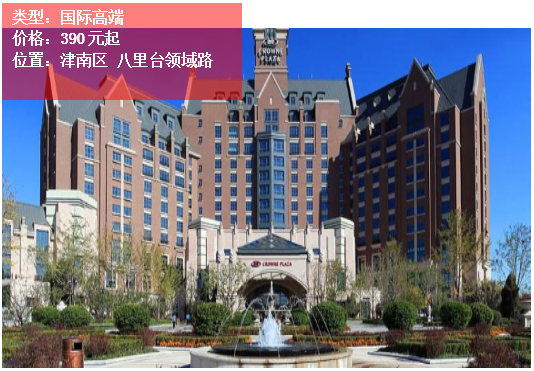 地理位置比较优越,坐落在海河岸边,离天津眼很近,景色很美;新开酒店,设施比较新,卫生干净;房间很大,床很舒服;,但是房间面积较小;服务很好,带游泳池、健身房、spa。
