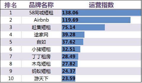 3月的运营指数与2月份基本持平,但前10的品牌有所变动。赶集短租的运营指数提升比较多。