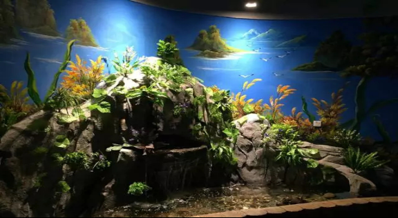淡水鱼展区以流线型长廊为主,游客可隔着橱窗观赏带红脸蛋的小丑鱼、色彩艳丽的鹦鹉鱼、争强好斗的接吻鱼。