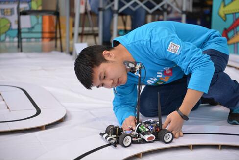 在创意作品单元竞赛环节,哈尔滨赛区的创意作品体现出极强的农业强省和老工业基地特色,多个大学组创意作品在探索农业智能化方面做出尝试,比如,能够针对不同形状的果蔬进行快速、准确、无损甄选、装箱的果蔬分拣机器人;拥有图像处理技术、能够区分庄稼和杂草并进行自主导航的除草机器人;将弹跳运动与滚动运动相结合的农用球形巡检机器人,这些机器人非常适合应用于农业领域,方便农民使用,降低农业生产成本。高中组的同学们则从小处着眼,发现了一系列关于“交通”的问题,并提出解决方案。你是否有过开车通过路口,因前方大车挡住视线而“勇闯”红灯?你是否因为追赶不上进站公车而在寒风中苦苦等待?你是否被地图导航到目的地,仍然晕头转向?由高中生们提出的“交通信号信息车内显示装置“、“公交候车应急系统”、“区域引导系统”正在为解决这些身边问题做出努力。对于哈尔滨赛区今年的创意作品,评审专家纷纷表示,同学们已经用自己的专业知识对提出的创意进行了深入研究,并能同时考虑到经济与环保两个方面,值得嘉奖。