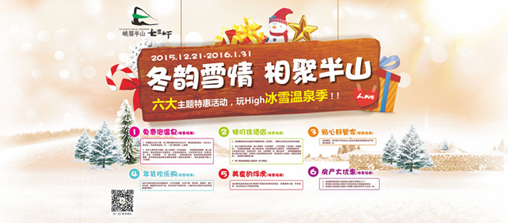峨眉半山七里坪冰雪温泉季火热进行中,免费泡温泉、免费住酒店、贴心好管家、年货欢乐购、美食的俘虏、房产大优惠,六大惊喜等你来享;这元旦节让我们一起相约峨眉半山七里坪,共度轻松惬意元旦小长假。