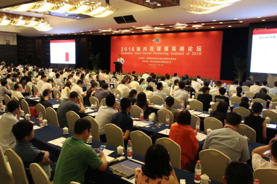 2016年6月24日“国内双保理高峰论坛”在北京市亚洲大酒店举行,论坛以“创新、改变、共赢”为主题,就国内双保理的合作前景、模式设计、风险防范等方面展开说明与讨论。商务部国际贸易经济合作研究院信用与电子商务研究所所长、商业保理专委会常务副主任兼秘书长韩家平,中国银行原副行长、国际商会执行董事张燕玲,中国民生银行交易银行部保理业务部副总经理邓莎莎等嘉宾出席做主题演讲,出席活动的还有国内众多的商业保理公司。