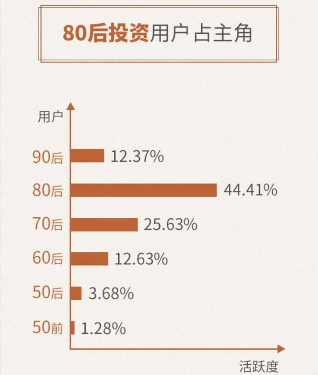 ? ? 70后和80后是当之无愧的主力,占比分别为44.41%和25.63%,财力雄厚,闲置资金较多。