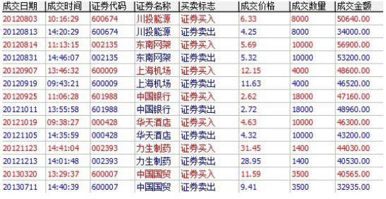 ??? 2012年8月2013年的炒股成绩