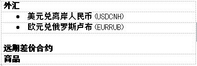 ? ? 瑞讯外汇产品系列将新增两种货币对(美元兑离岸人民币USDCNH以及欧元兑俄罗斯卢布EURRUB)和8种商品、债券及股指远期差价合约