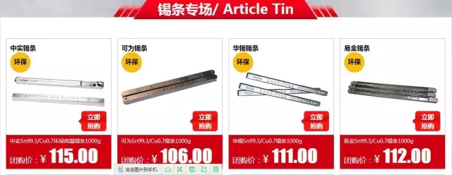 中实焊锡、嘉鹏泰焊锡、易金环保焊锡、科亿达焊锡、华锡锡业、可为锡业、兴鸿泰锡业、鑫茂锡业、焊点王、富士岛以及东峰焊锡等行业知名企业,凭借其过硬的产品质量和从业多年积累的口碑,成为本次焊锡团购的品牌供应商。