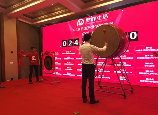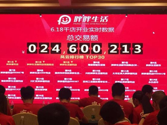 此次千店开业庆典还特别设置了当日营业额PK环节,并在胖胖生活总部进行各店营业额实时直播,当日累计营业额排名前30名的胖胖超市,便利店均会获得特别的奖励。