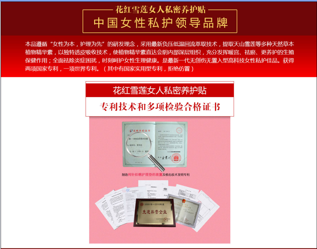?????? 花红于切入微商之初选择了花红40多 年的强项部分——女性健康产品,推出“花红雪莲女人私密贴”,得益于早期市场的打磨和消费者的信赖,市场销售火爆,代理时时处于“缺货断粮”状态,顾客复 购率极高,口碑极佳,转介绍或慕名而来的顾客群体逐渐壮大。随着花红雪莲女人的广告在各大卫视上线,花红的品质会让越来越多的人相信我们,选择我们!让顾 客如此心动且行动的理由是什么?当然是效果!花红好不好,客说了算!详情加?V?信:?ajian122797