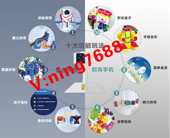 菠萝树5D智慧字母(bololetter)共有10种功能玩法,其中结合手机平板APP有5种功能(体验发现、看图识词、亲子百科、角色对战、魔力拼词),脱离手机平板后还有5种玩法(字母变形、职业盒子、磁力拼词、菠萝桌游、菠萝围棋)。