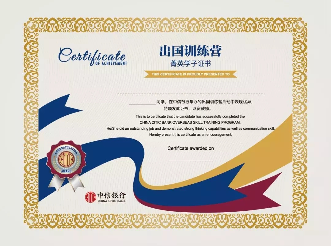 ● 和志同道合的伙伴们一起,在这个夏天留下难忘的记忆,获颁中信集团、中信银行和一起独到认证的“志在中国”中英文活动证书